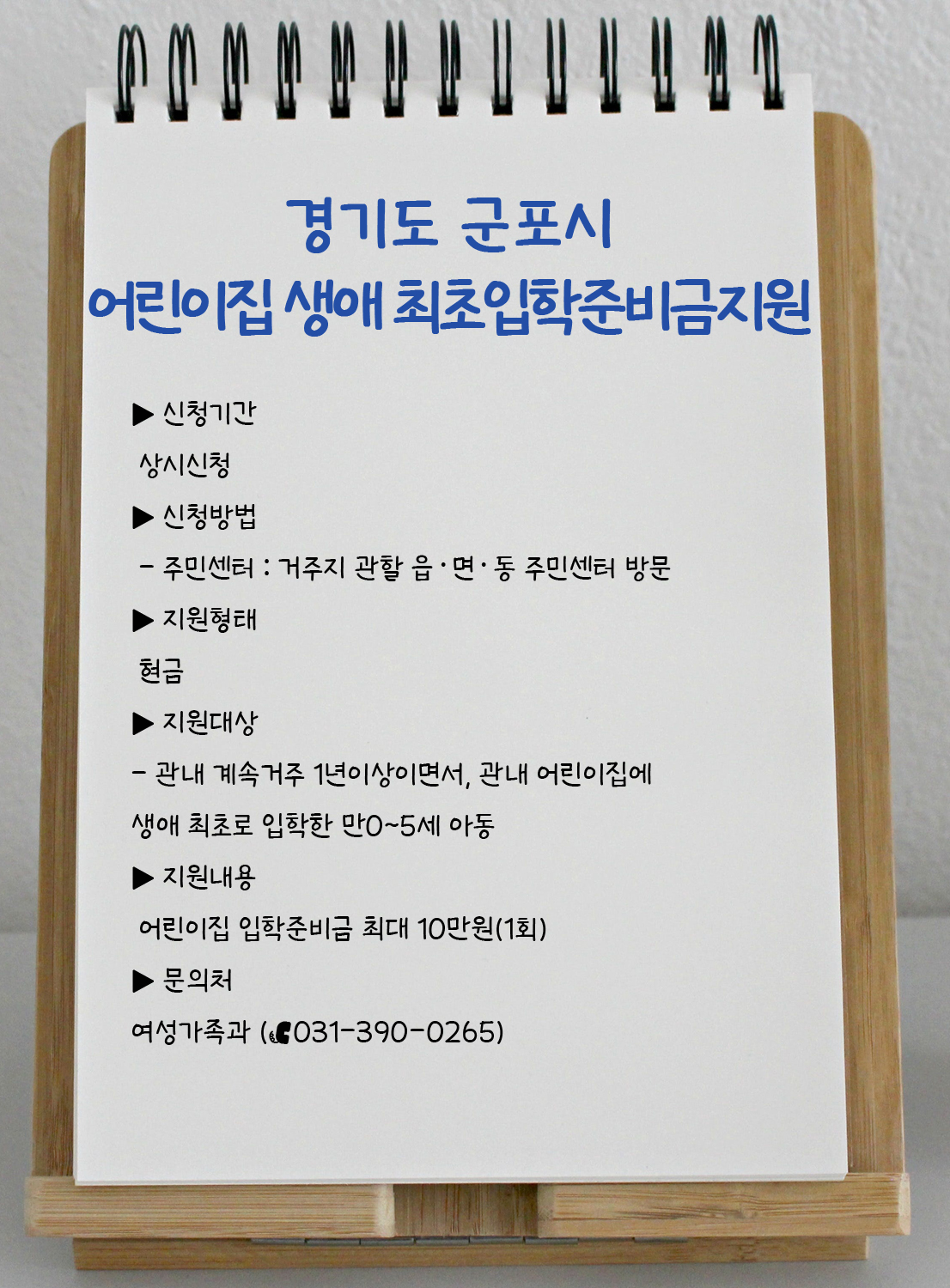 3.경기도 군포시 어린이집 생애 최초 입학준비금 지원
