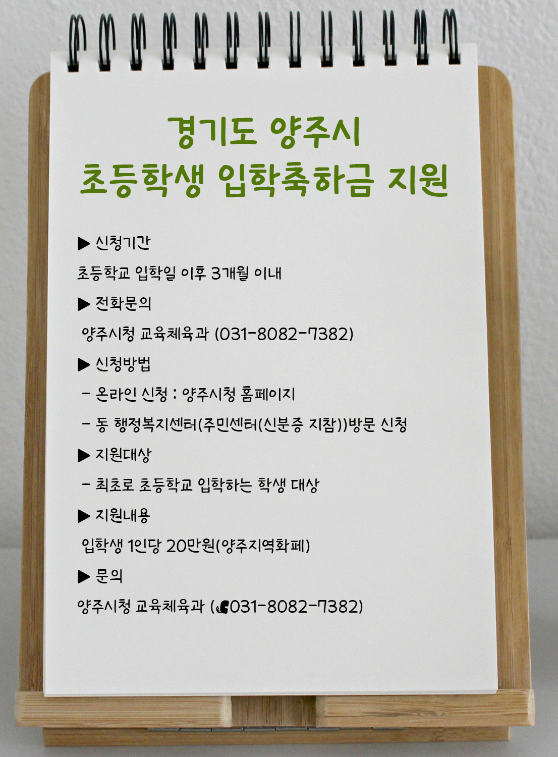 경기도 양주시는 양주시에 주민등록을 두고 최초로 초등학교에 입학하는 학생을 대상으로 1인당 지역화페 20만원을 지급합니다.