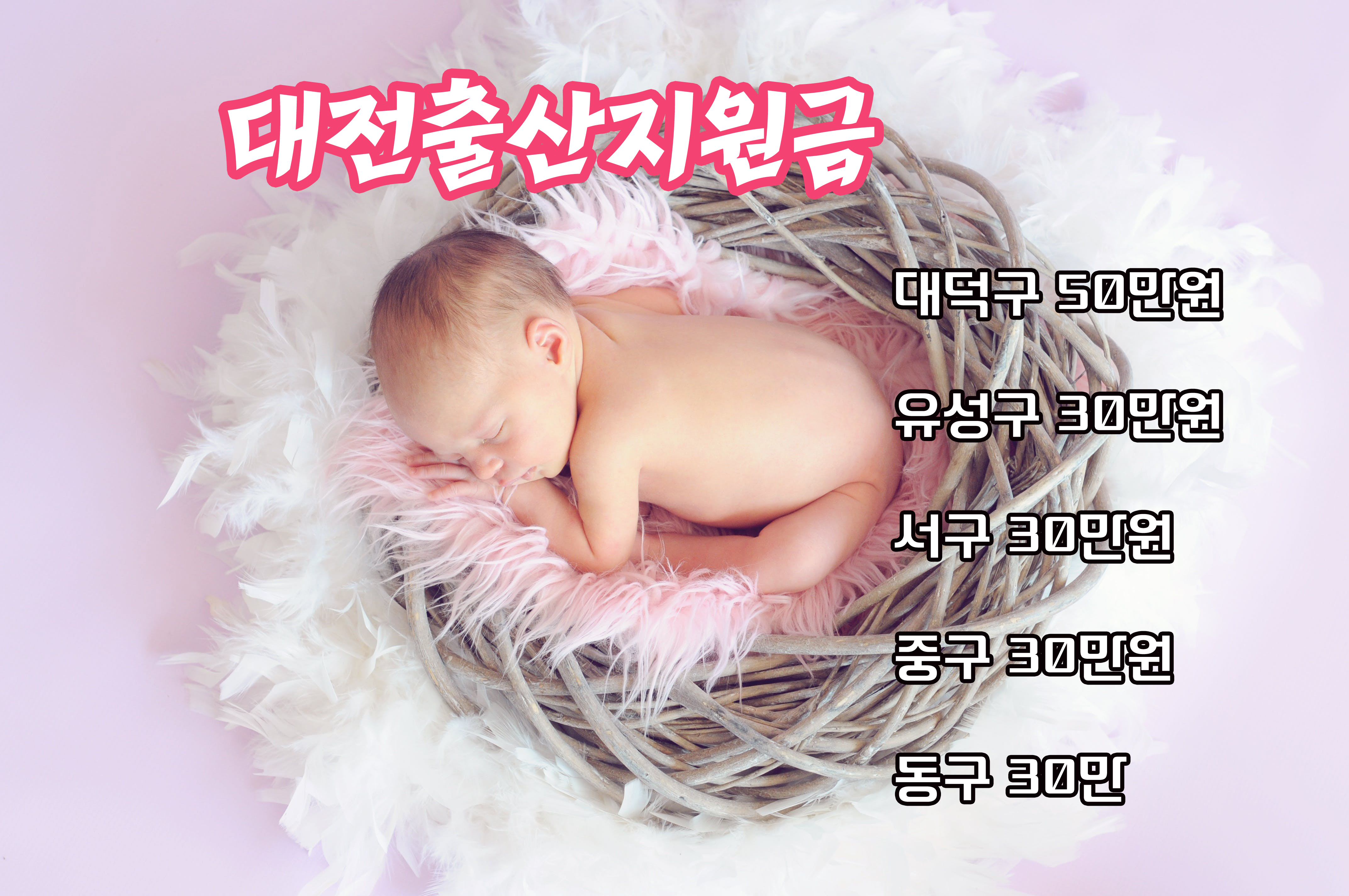 대덕구 50만원, 유성구 30만원, 서구 30만원, 중고 30만원, 동구 30만원 으로 출산지원금의 경우 1회에 한해서 지급되며, 출생일로 부터 1년 이내에 신청 가능합니다.