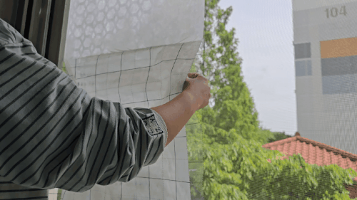 2. 제품 을 방충망 사이즈에 맞게 제단하여 부착합니다.