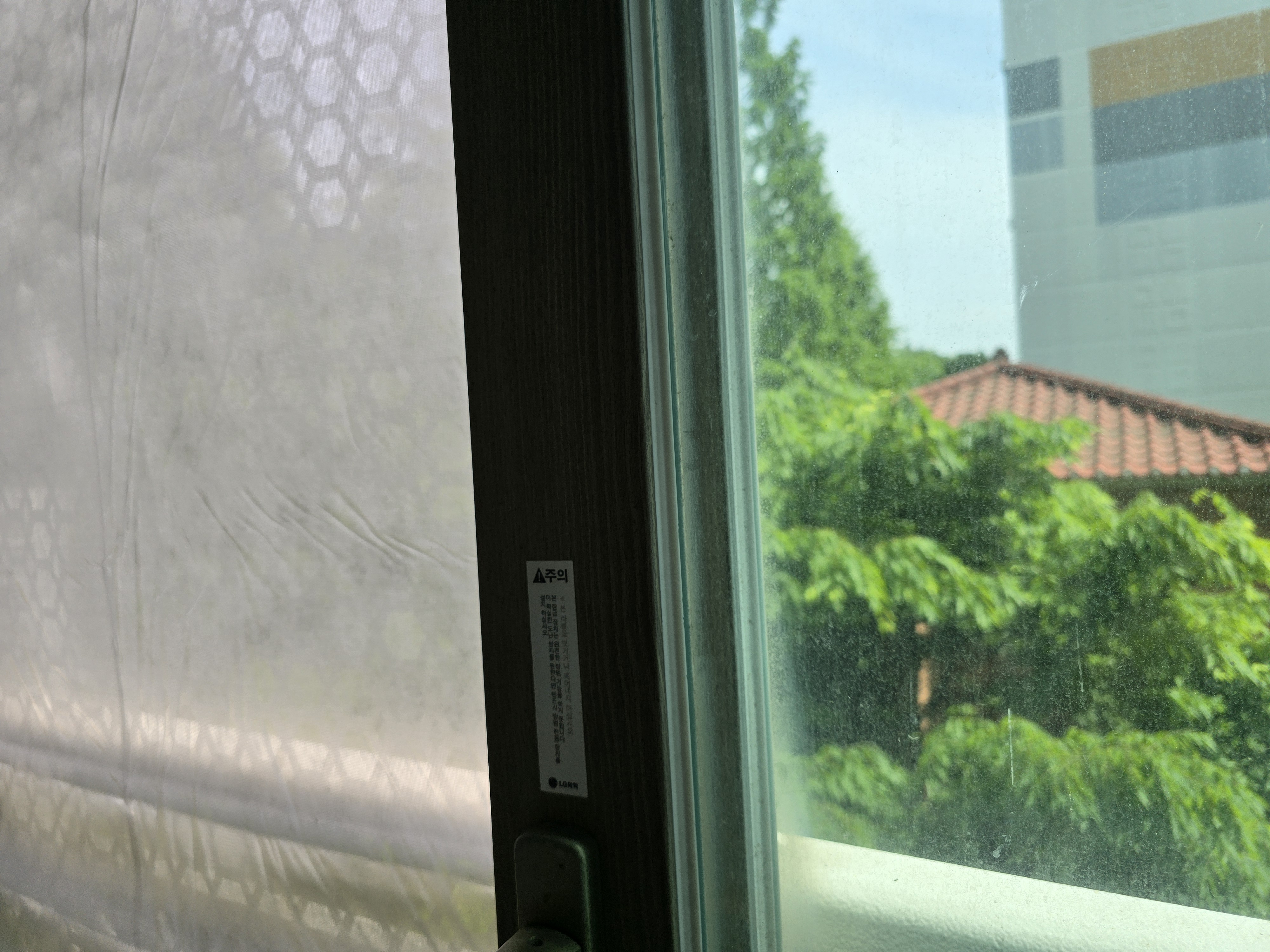 창문에 붙어있는 송화가루를 보니 붙히길 잘했다는 생각이 듭니다.