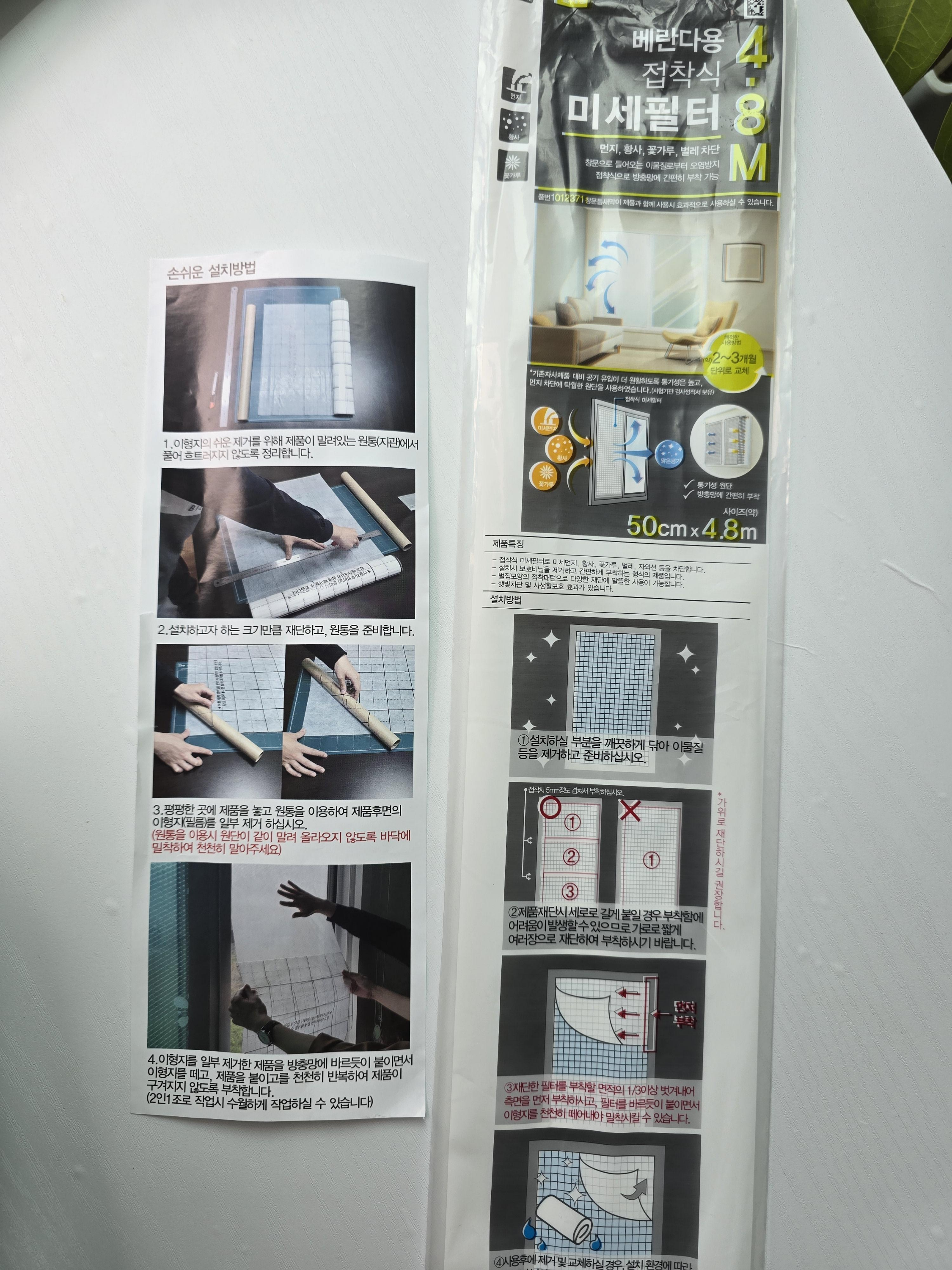 * 작은 창문용 접착식미세필터는 50cm X 2.4m 로 3,000원입니다.