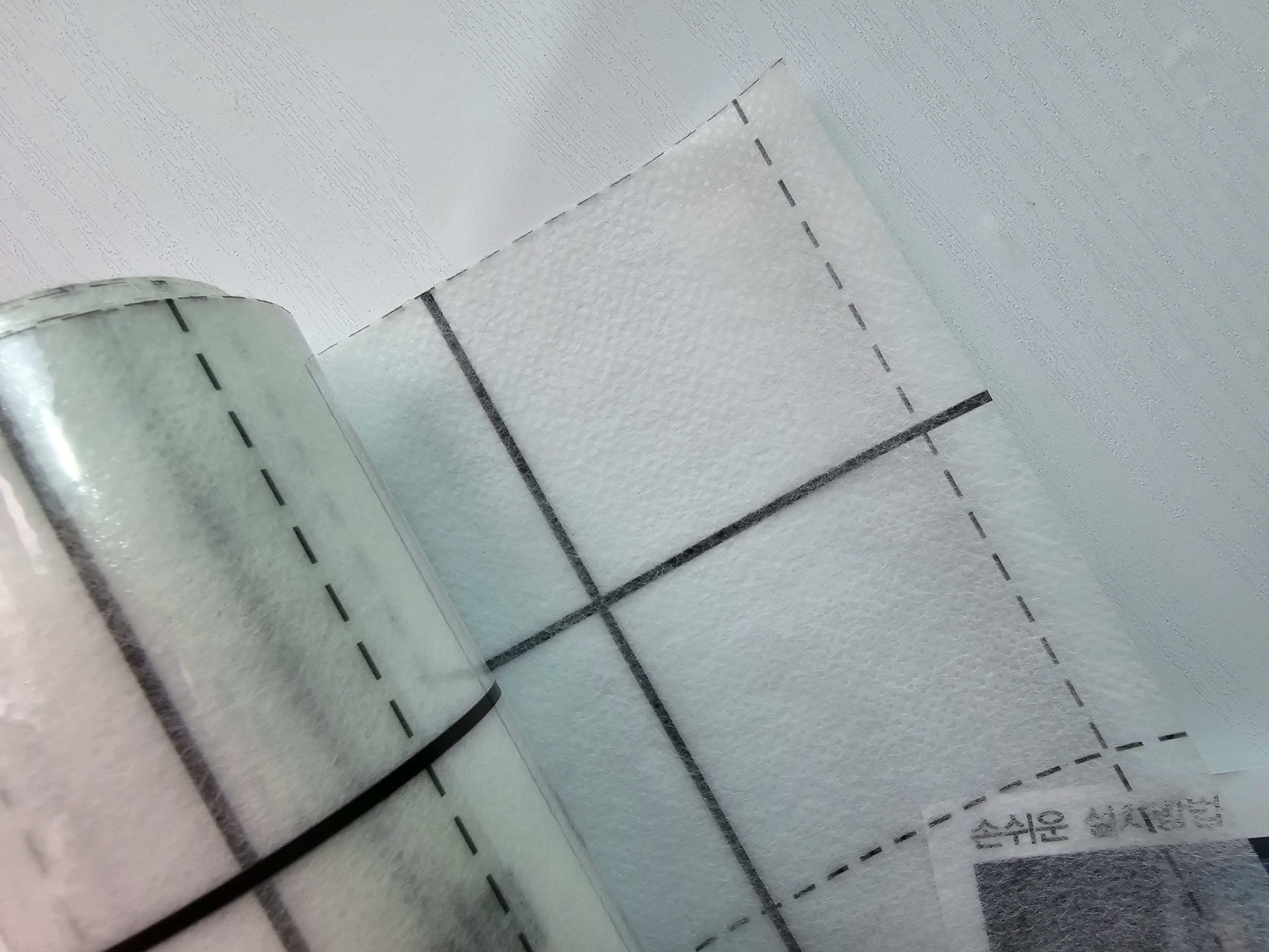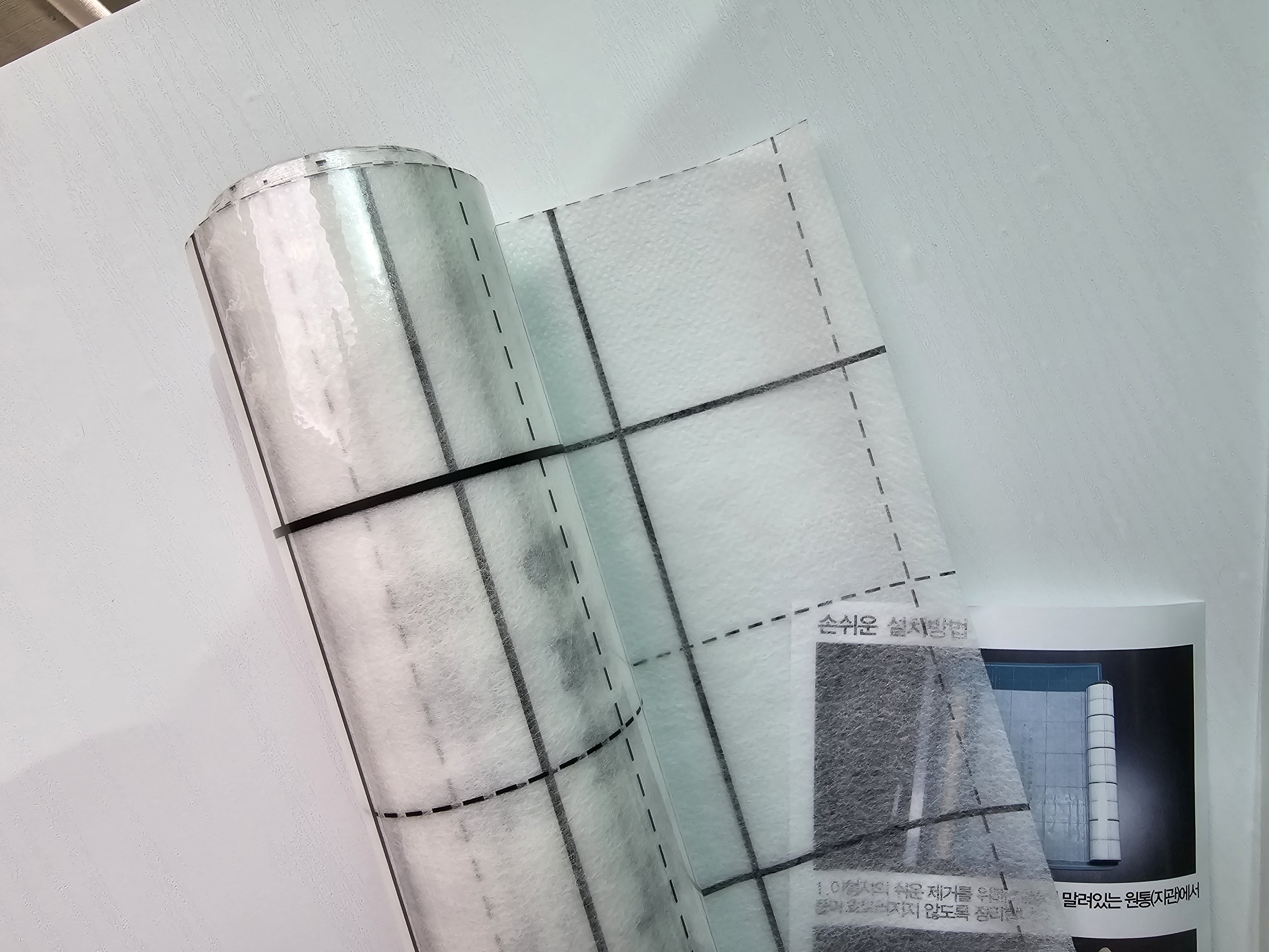 *접착시 세로로 길게~ 부착 X 가로로 부착해야 합니다. 가로로 짧게 여러장 재단하여 부착해야 깔끔하게 부착할 수 있습니다.
