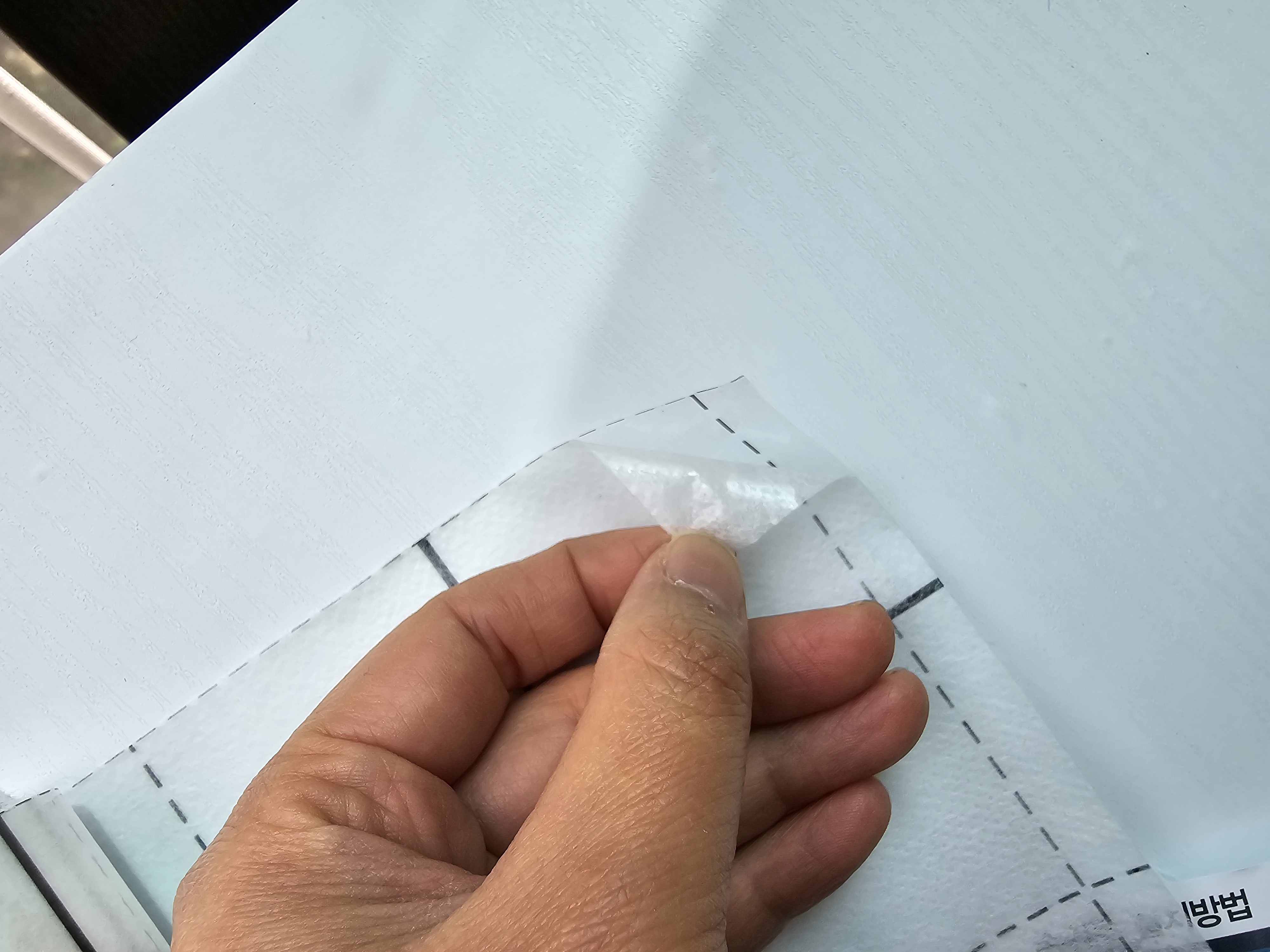 뒤에 이형지를 살짝씩 내리면서 벗기고 붙히고 벗기고 붙히면 됍니다.