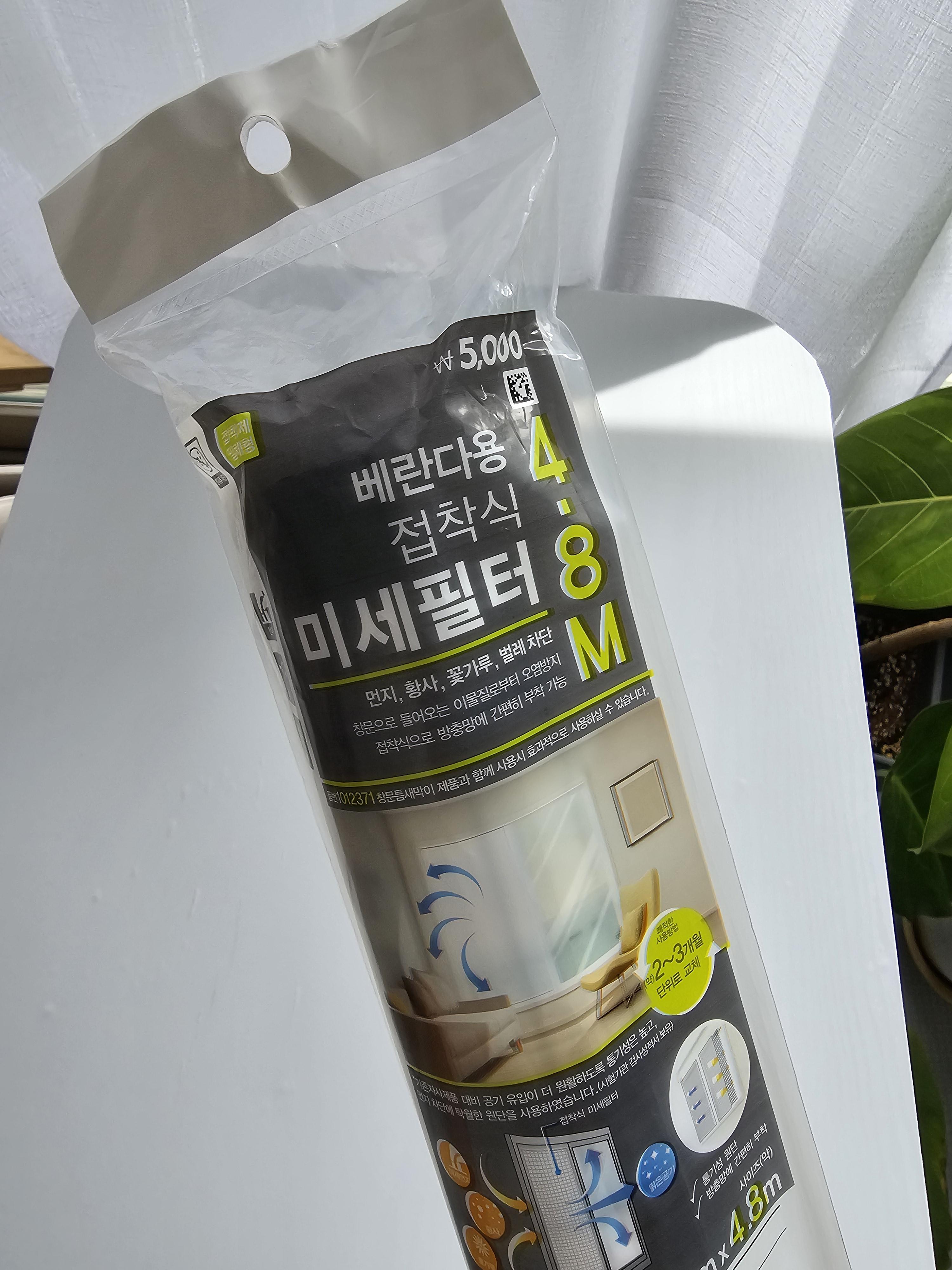 * 작은 창문용 접착식미세필터는 50cm X 2.4m 로 3,000원입니다.