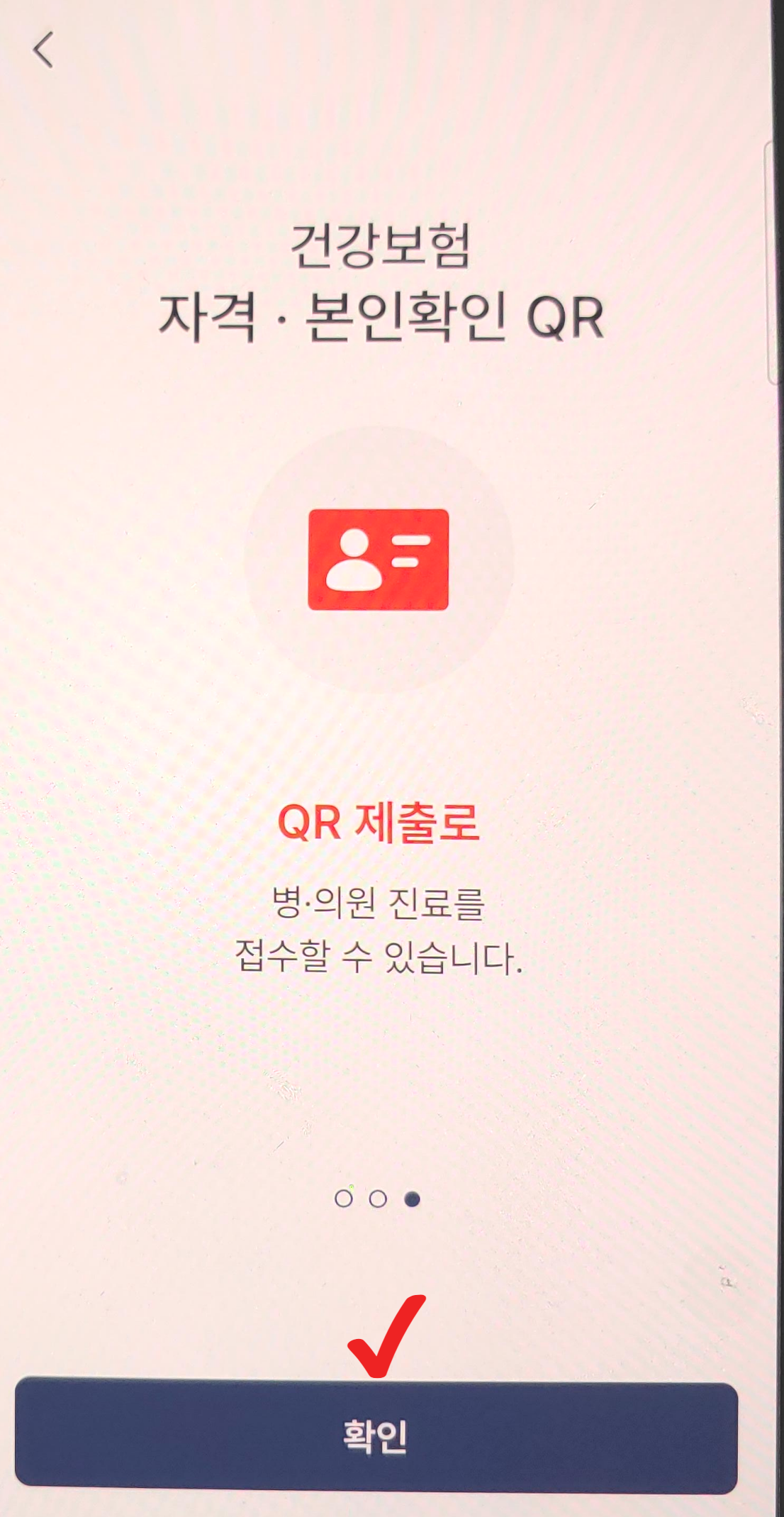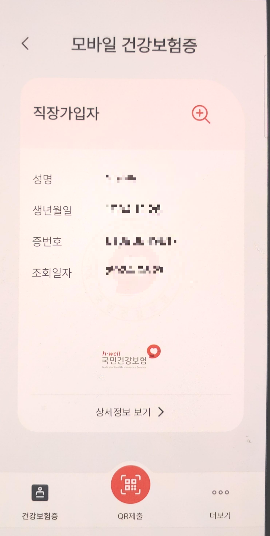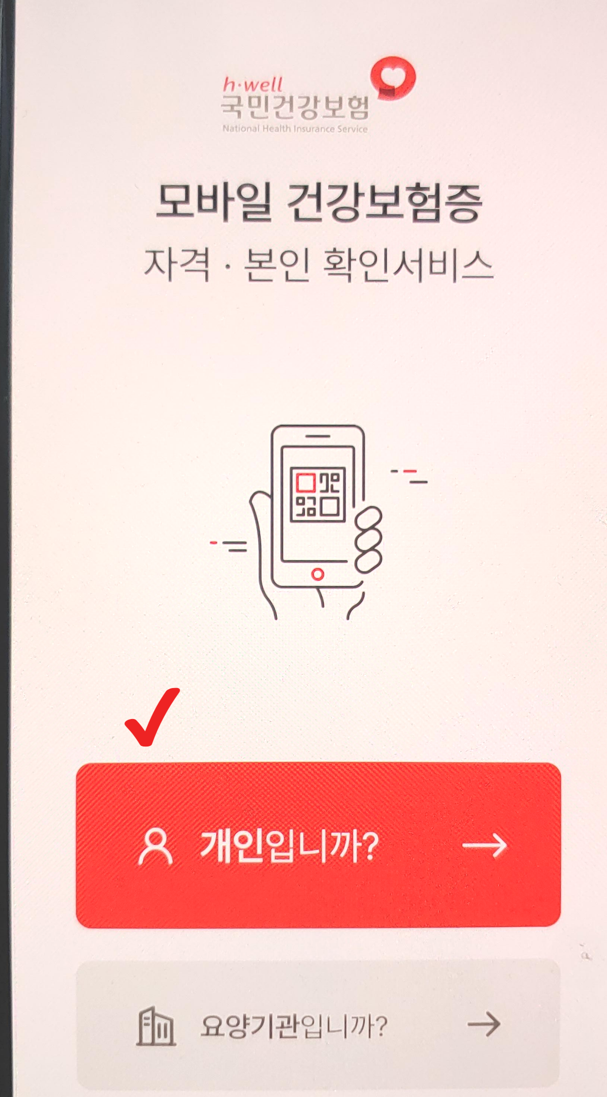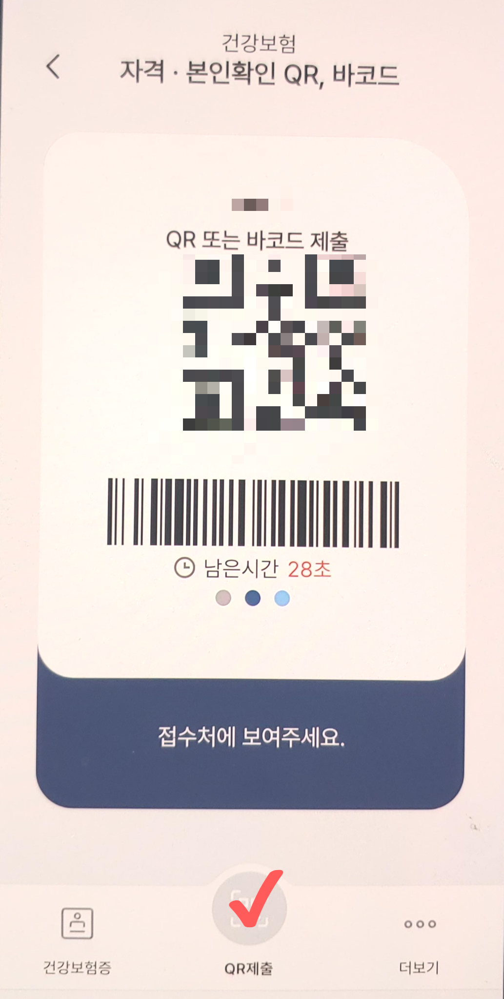 모바일 건강보험증 또는 QR 제출을 눌러 병원 방문시 보여주면 돼요.