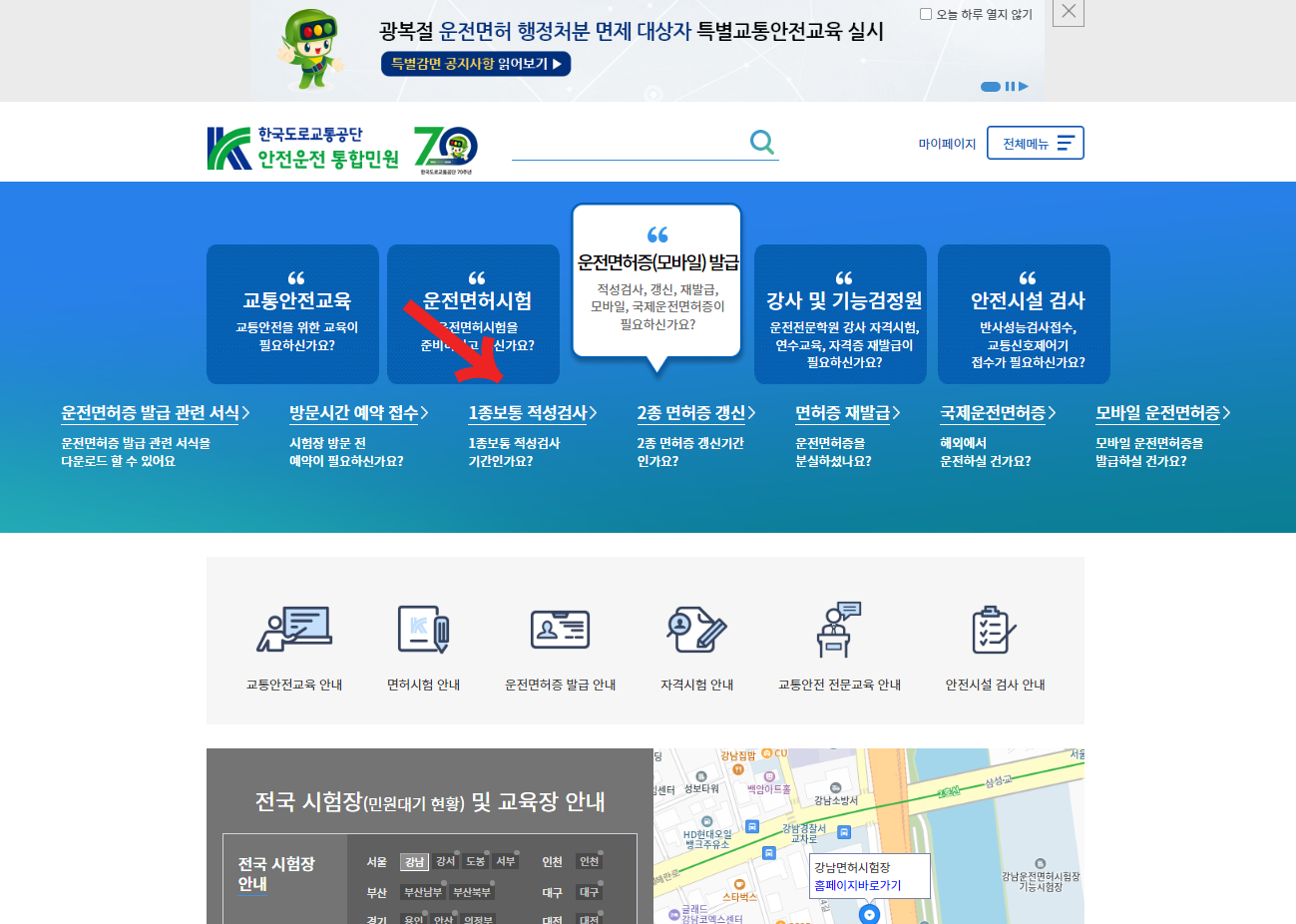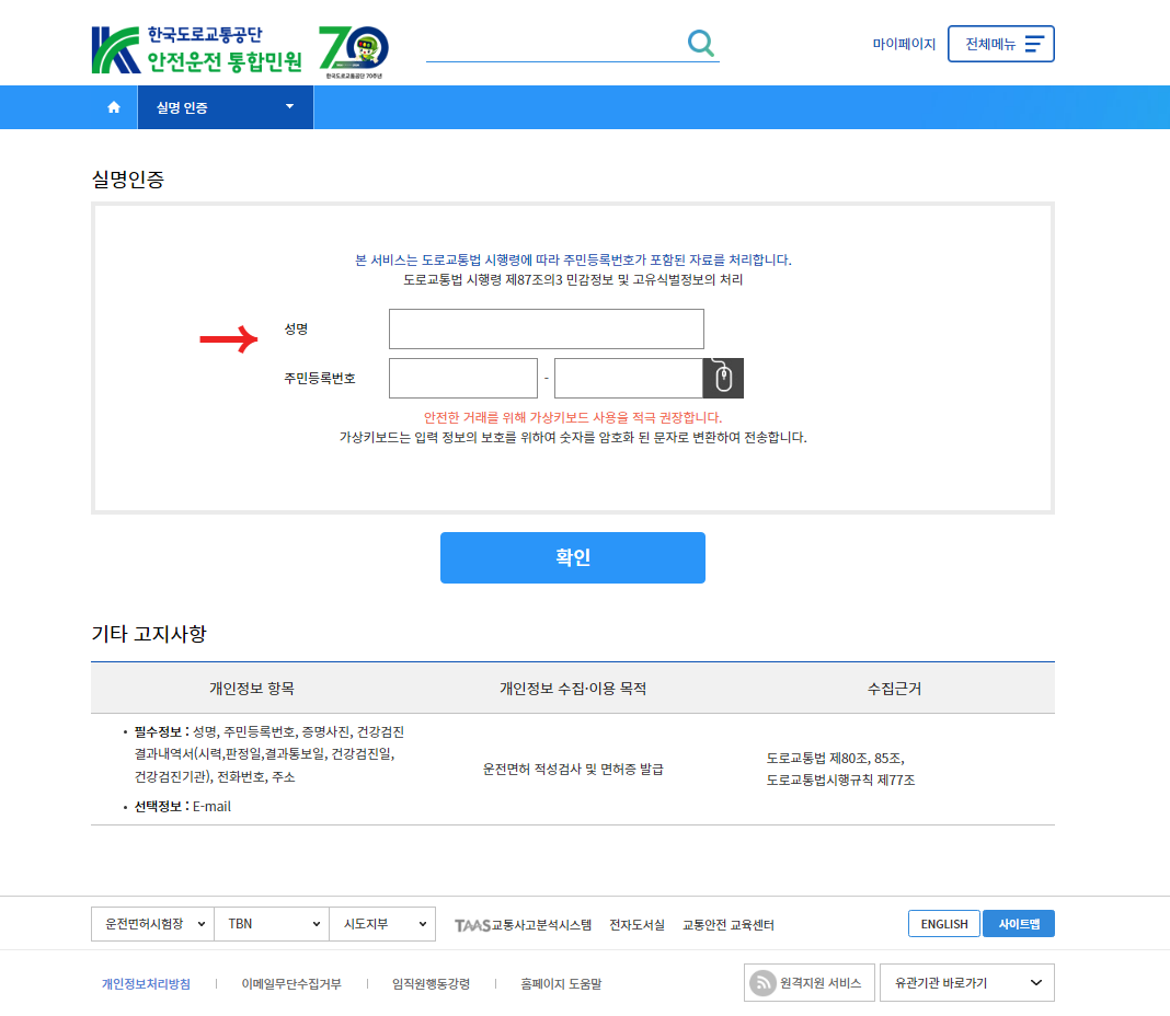한국도로교통공단 안전운전 통합민원 홈페이지 (https://www.safedriving.or.kr/main.do)