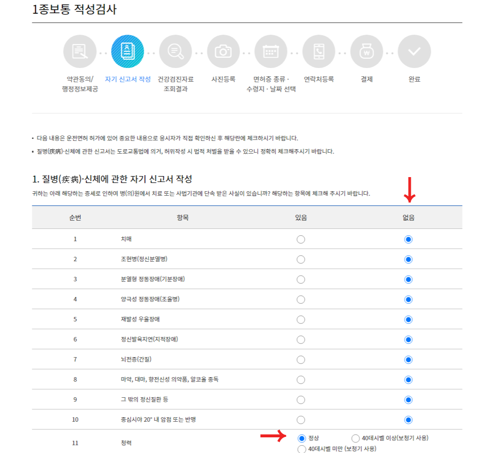 1. 운전면허증(모바일)발급 - 1종보통 적성검사 클릭
