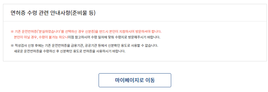 * 기존 운전면허증 지참하시여 반드시 본인이 방문하여야 합니다. 본인이 아닐시 수령 불가능합니다.