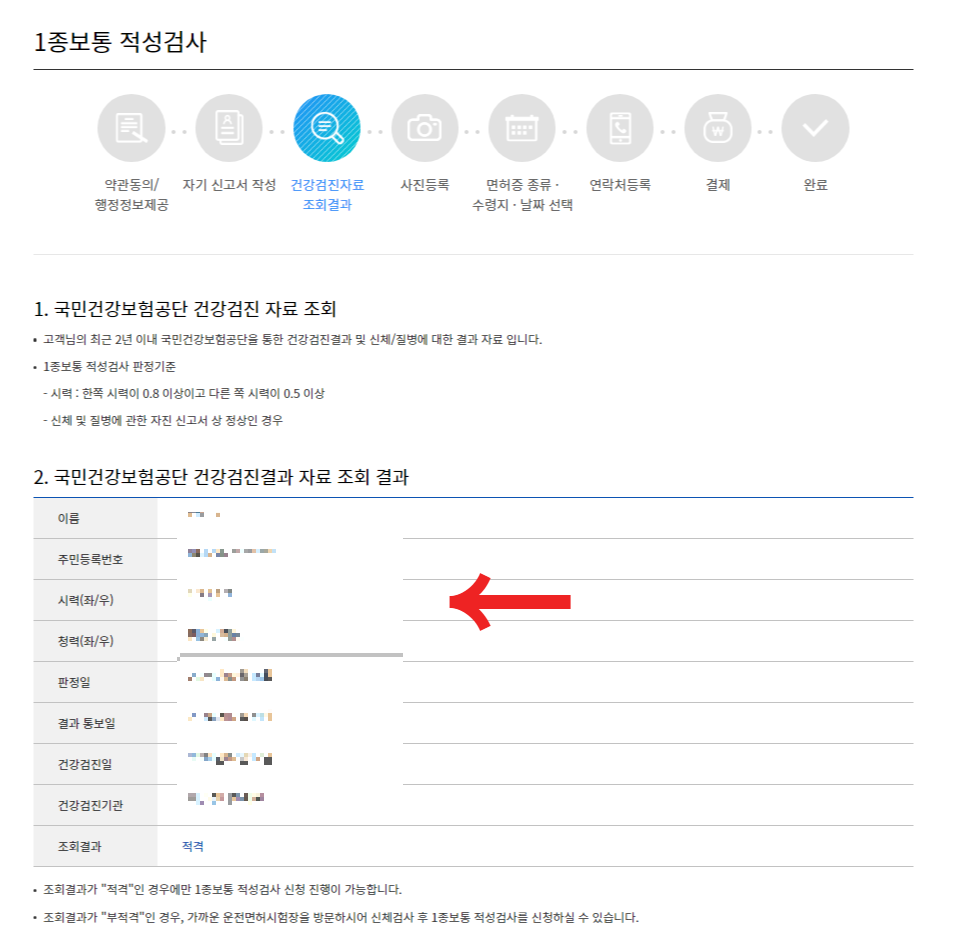 부적격의 경우 가까운 면허 시험장에 방문하여 신체검사후 적성검사 신청을 하실수 있습니다.