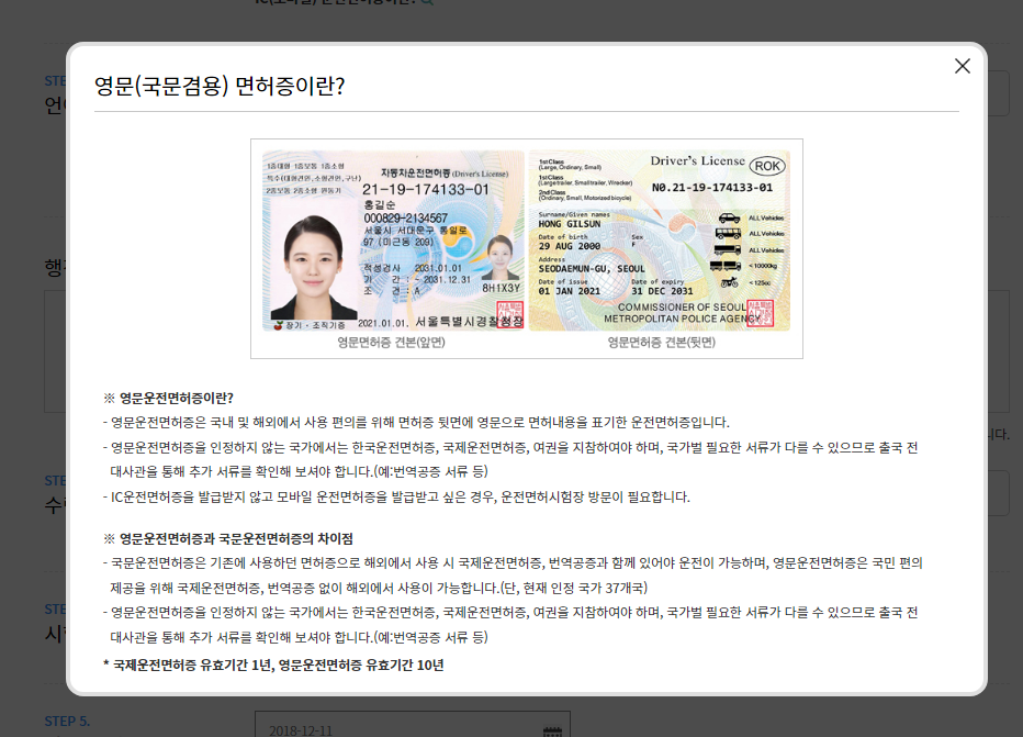 *국제운전면허증 유효기간 1년, 영문운전면허증 유효기간 10년