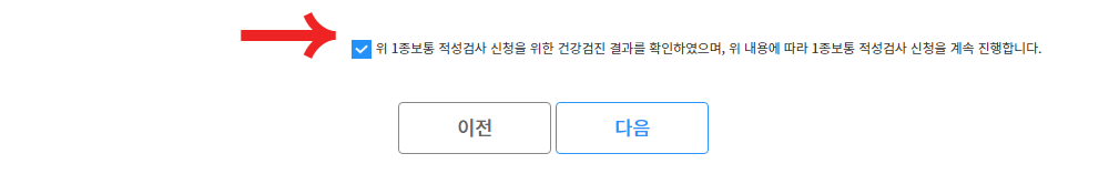 신청내역 확인 및 적성검사(갱신) 관련 유의사항 확인후