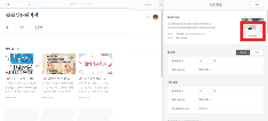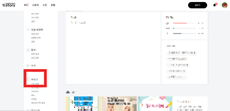 5. 내 티스토리 계정에 접속하여 스킨편집을 클릭합니다.