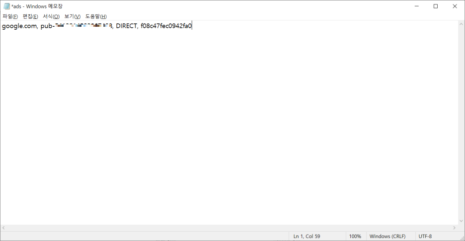 4. 내 PC에 ads.txt 파일로 저장합니다.