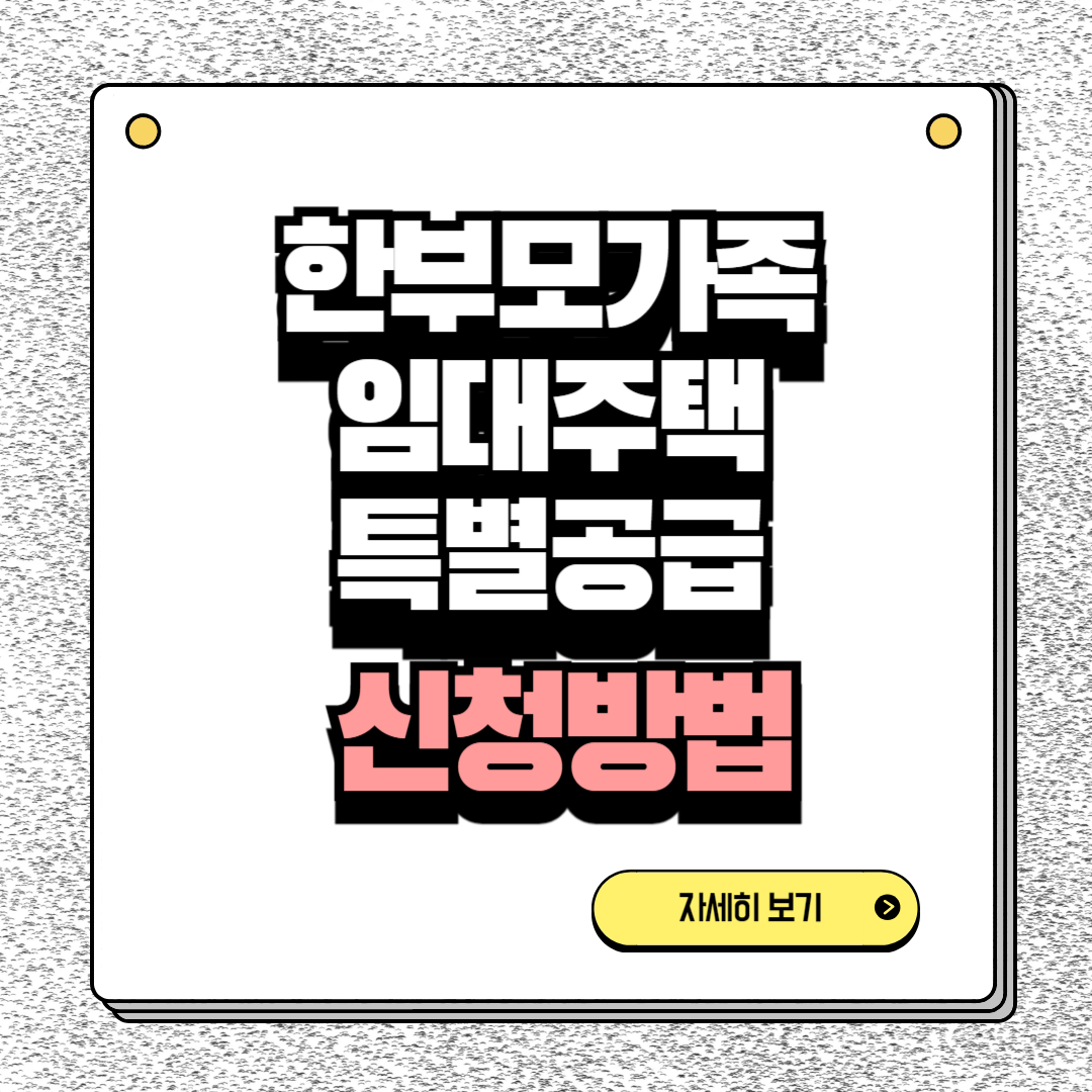 한부모가족 임대주택 특별공급은 한부모가족의 주거 안정을 도모하고, 자립을 지원하기 위한 중요한 제도입니다. 해당 요건을 충족하시는 분들은 적극적으로 신청하여 안정적인 주거 환경을 마련하시기 바랍니다.