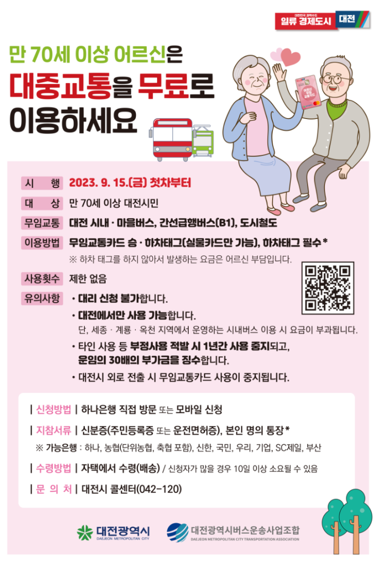 대전시에서는 65세 이상 어른들은 지하철이 무료입니다.