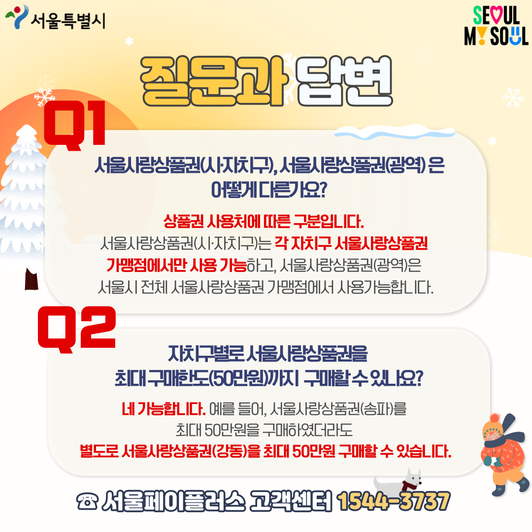 서울사랑상품권은 자치구 내의 가명점에서 사용가능합니다.
